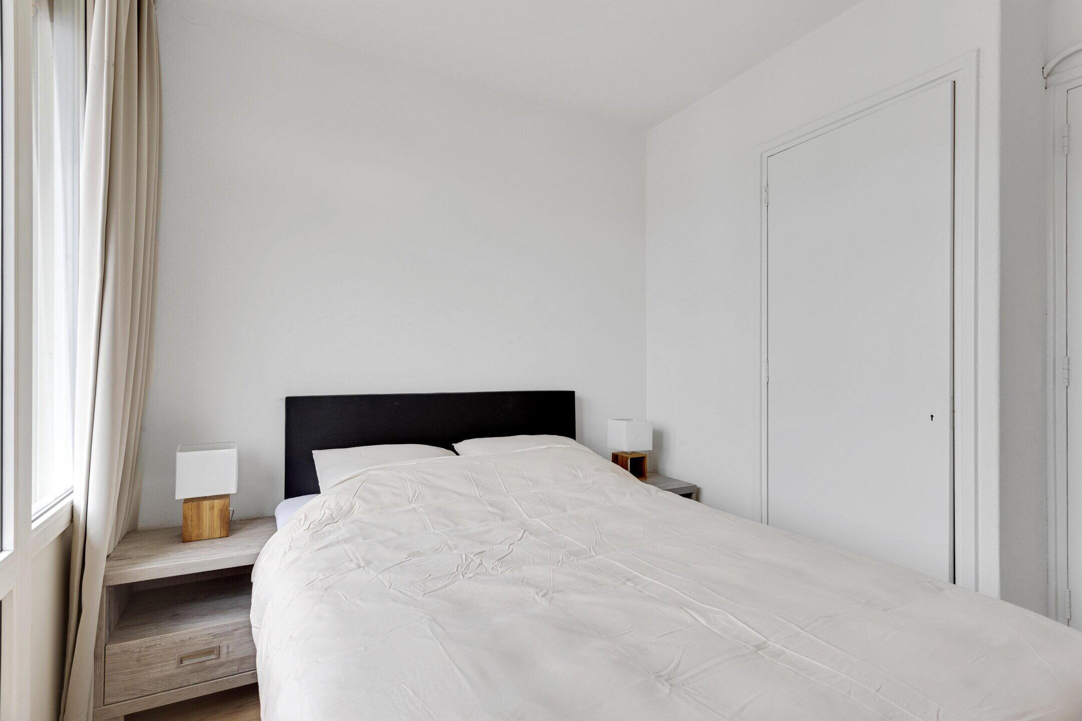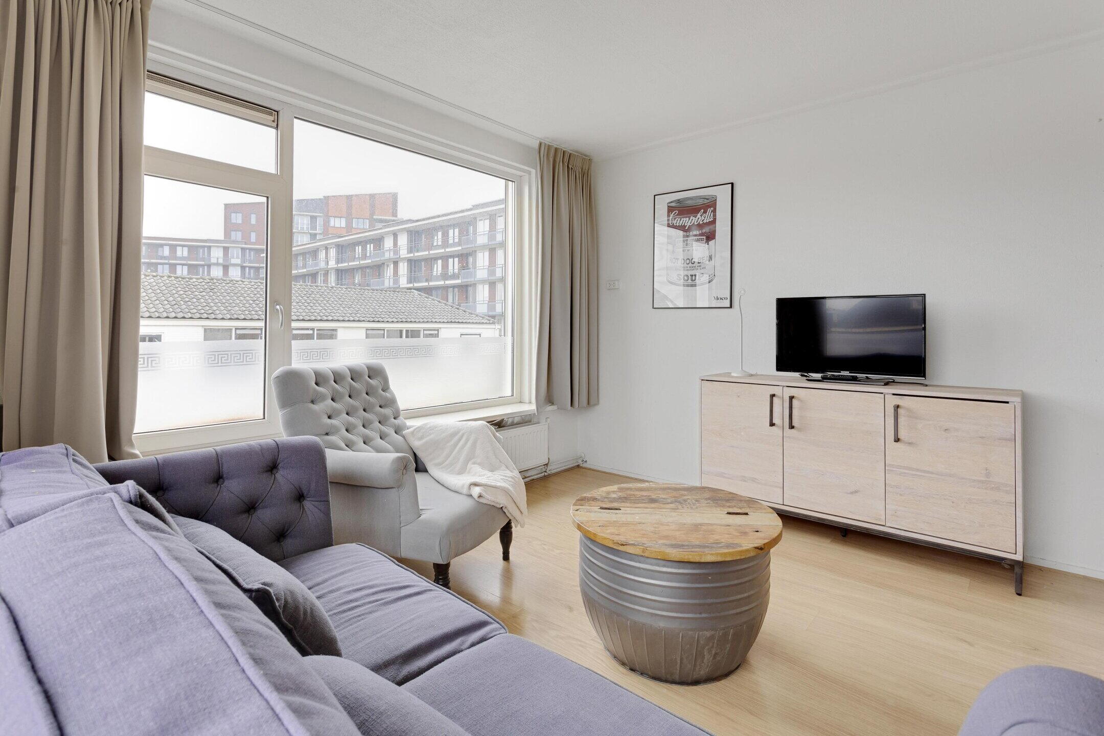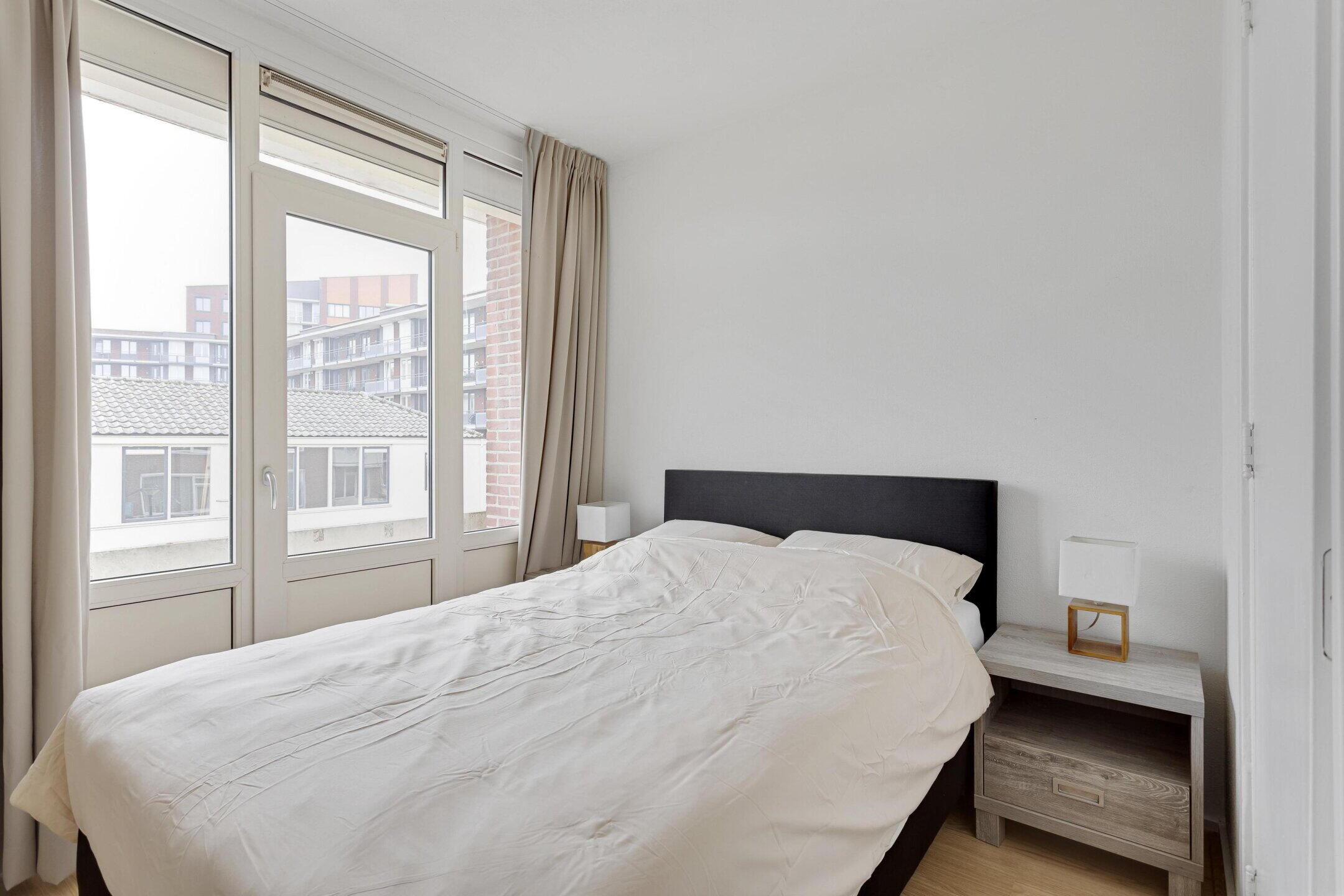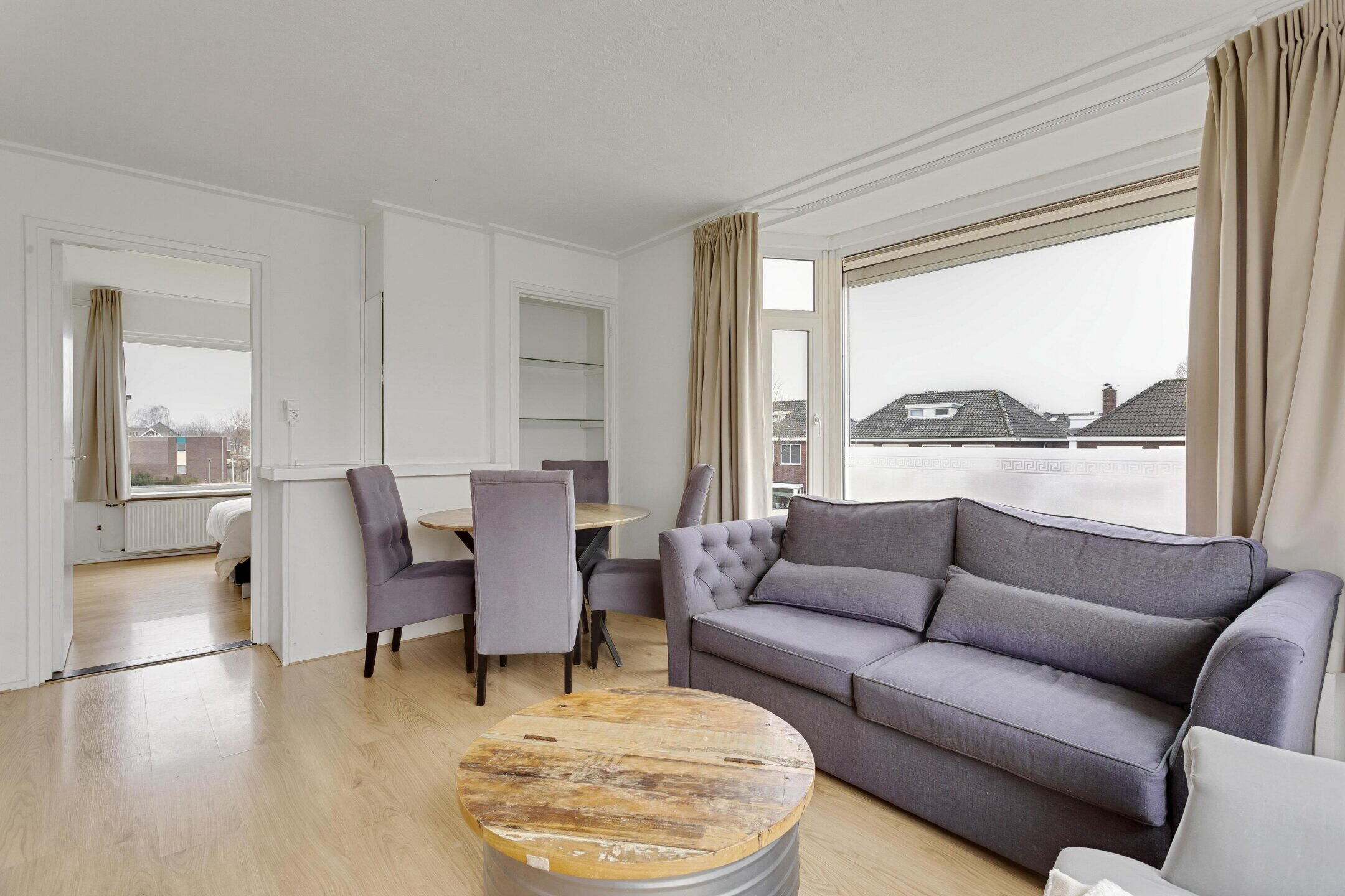 De woonkamer vormt het hart van het appartement. Door de hoekligging en de erker in de zijgevel valt hier veel natuurlijk licht binnen en geniet je van een vrij uitzicht, wat zorgt voor een open en prettig woongevoel. Vanuit de woonkamer is de tweede slaapkamer bereikbaar, perfect als extra slaapkamer, thuiswerkplek of hobbyruimte. De woonkamer is bovendien voorzien van elektrische rolluiken, wat extra comfort en privacy biedt.