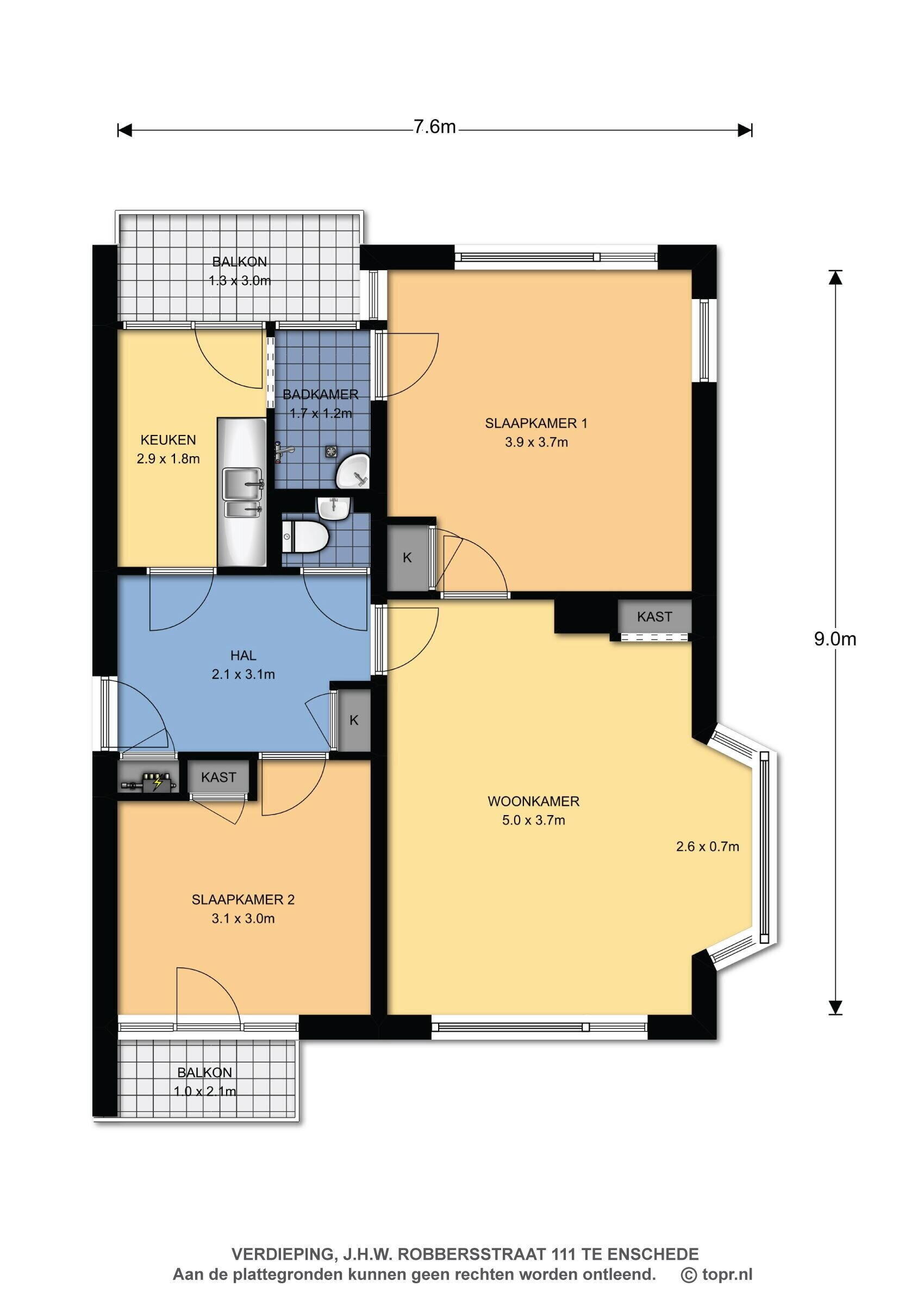 De entree geeft toegang tot de centrale hal met meterkast en toiletruimte. De slaapkamer aan de voorzijde is voorzien van een vaste kast en biedt toegang tot het balkon. De perfecte plek voor je ochtendkoffie. De keukenruimte is functioneel ingericht, heeft eveneens toegang tot een balkon en kijkt vrij weg. Koken met dit vrije uitzicht zorgt voor een gevoel van ruimte en rust en zal nooit vervelen. Vanuit de keuken bereik je de badkamer, voorzien van een douche, wastafel en aansluiting voor de wasmachine. Zowel de keuken als badkamer kunnen naar eigen wens worden gemoderniseerd.